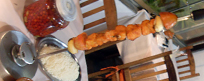 Colocar 01 tomate e 01 cebola inteira no espeto. Espetar 04 cubos de filé de Caxara. Adicione outro tomate, mais uma cebola na ponta do espeto (a cebola e o tomate evitam que o filé deslize).
